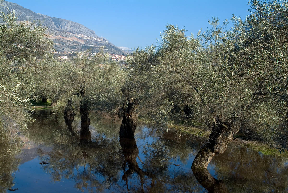 Ο περίφημος Ελαιώνας της Άμφισσας, μέρος του Δελφικού τοπίου, είναι ο αρχαιότερος καταγεγραμμένος ελαιώνας της Ελλάδας και τόπος παγκόσμιας κληρονομιάς της UNESCO. Κατέχει τη μεγαλύτερη συνεχόμενη έκταση, αφού εκτείνεται από την Άμφισσα μέχρι τη θάλασσα του Κορινθιακού. Ο Ελαιώνας της Άμφισσας αποτελείται από 1.200.000 ελαιόδεντρα, κάποια από τα οποία υπολογίζεται πως έχουν φυτευτεί πολλούς αιώνες πριν. Σύμφωνα με ιστορικές πηγές οι πρώτοι που καλλιέργησαν ελαιόδεντρα στην περιοχή ήταν οι Πελασγοί κατά τα προϊστορικά χρόνια και κατά το πέρασμα των αιώνων η χρήση του χώρου δεν έχει αλλάξει ποτέ. Ο ελαιώνας έχει χαρακτηριστεί ως “παραδοσιακός” και προστατεύεται από ειδικές διατάξεις.